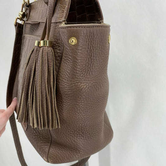 BROWN ISAAC MIZRAHI Pebbeled Leather Satchel