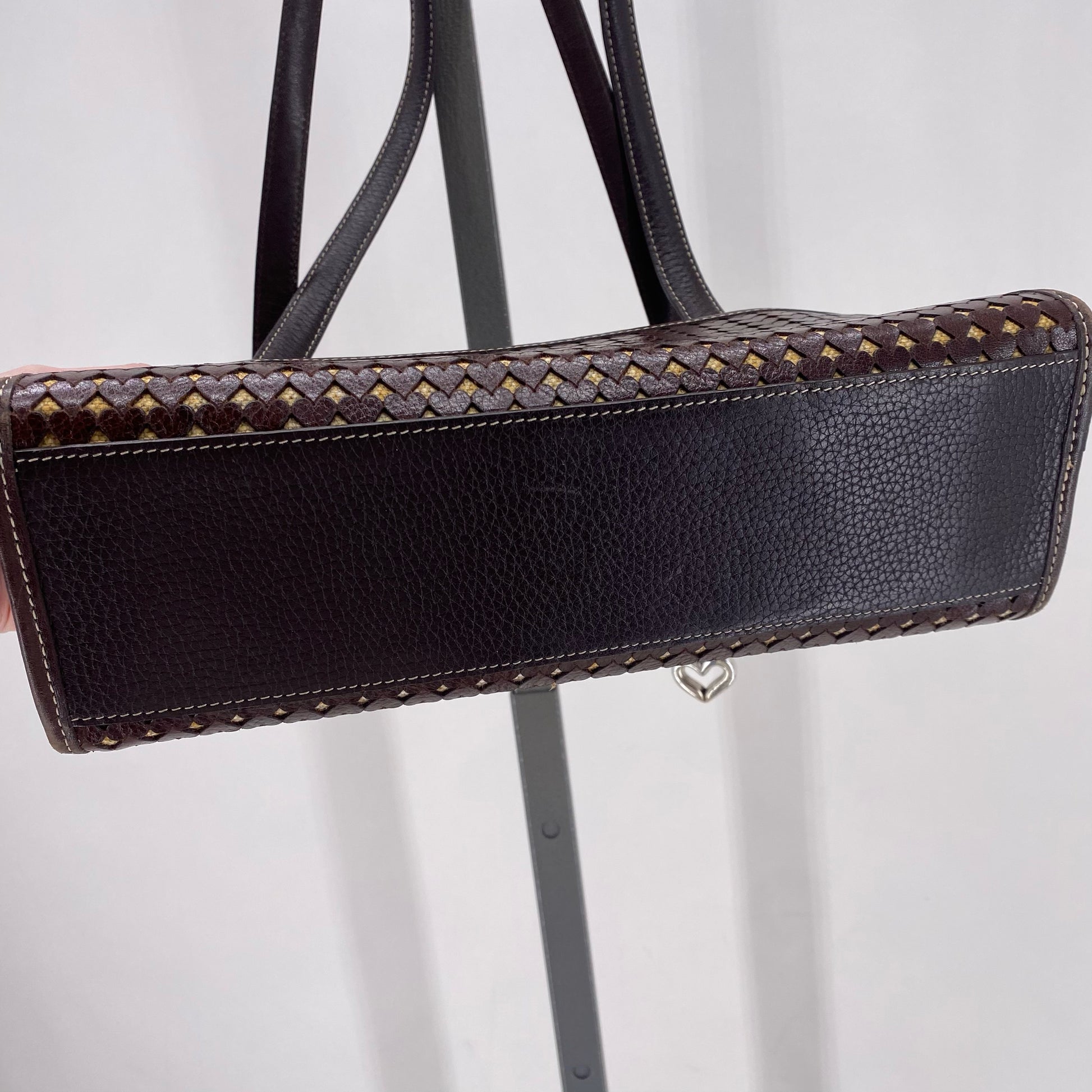 ZIP CLOSE, 2 HANDLES,CARVED HEARTS ALL OVER