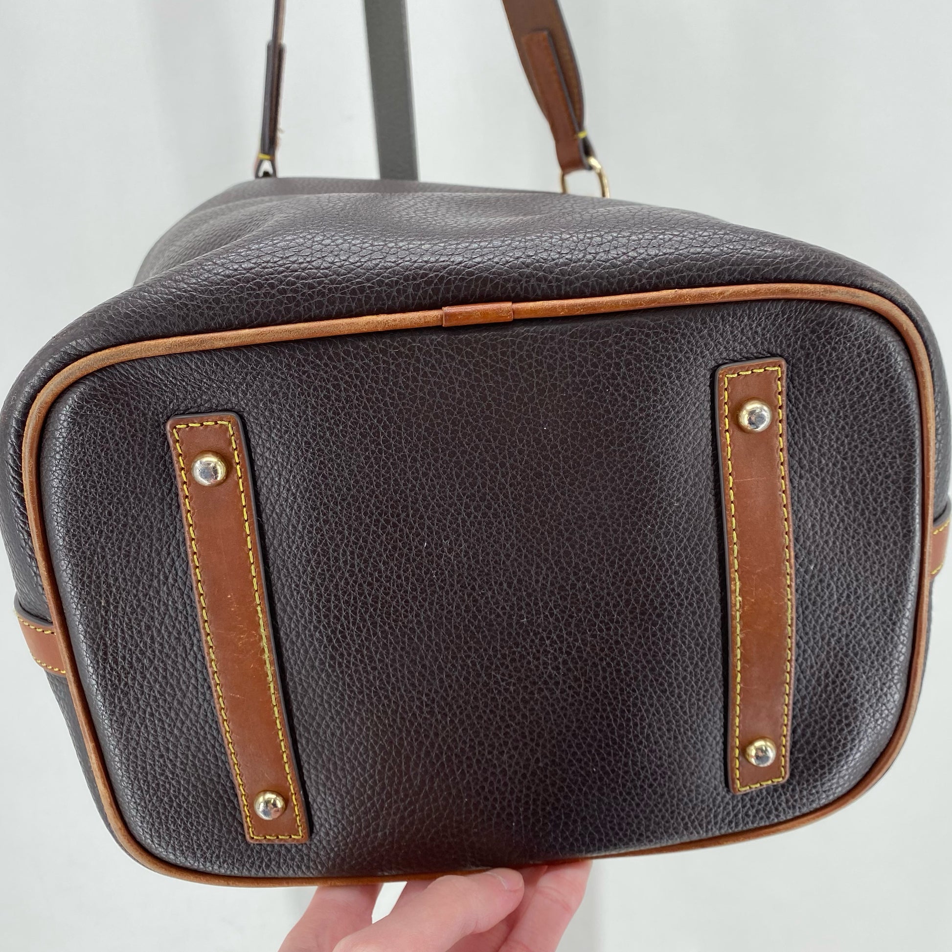 DARK BROWN DOONEY & BOURKE Leather Pebbeled Leather Shoulder Bag