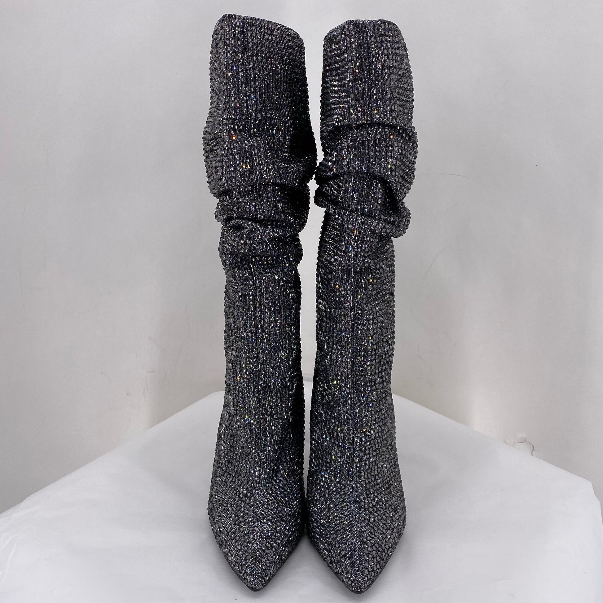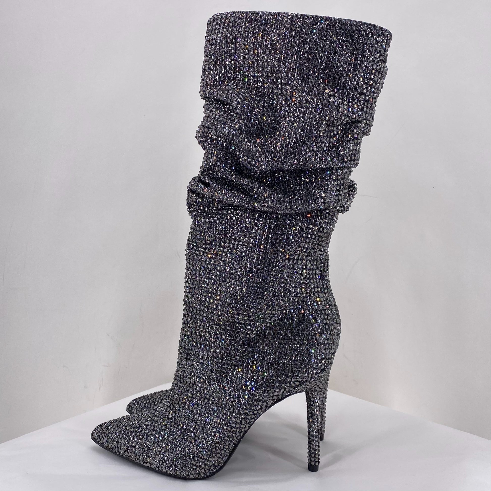 4" HEEL. PULL ON, SLOUCHED, STONE COVERED