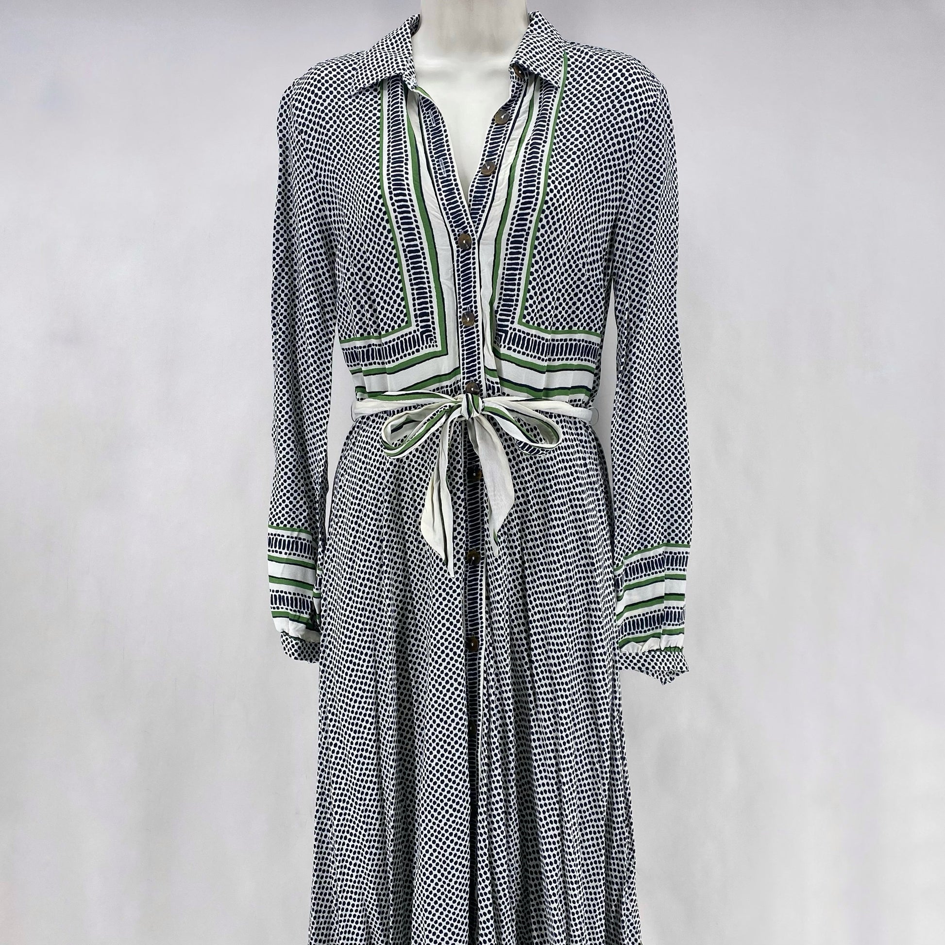 DES. NWT LS MID BUTTON UP WITH BELT/GREEN