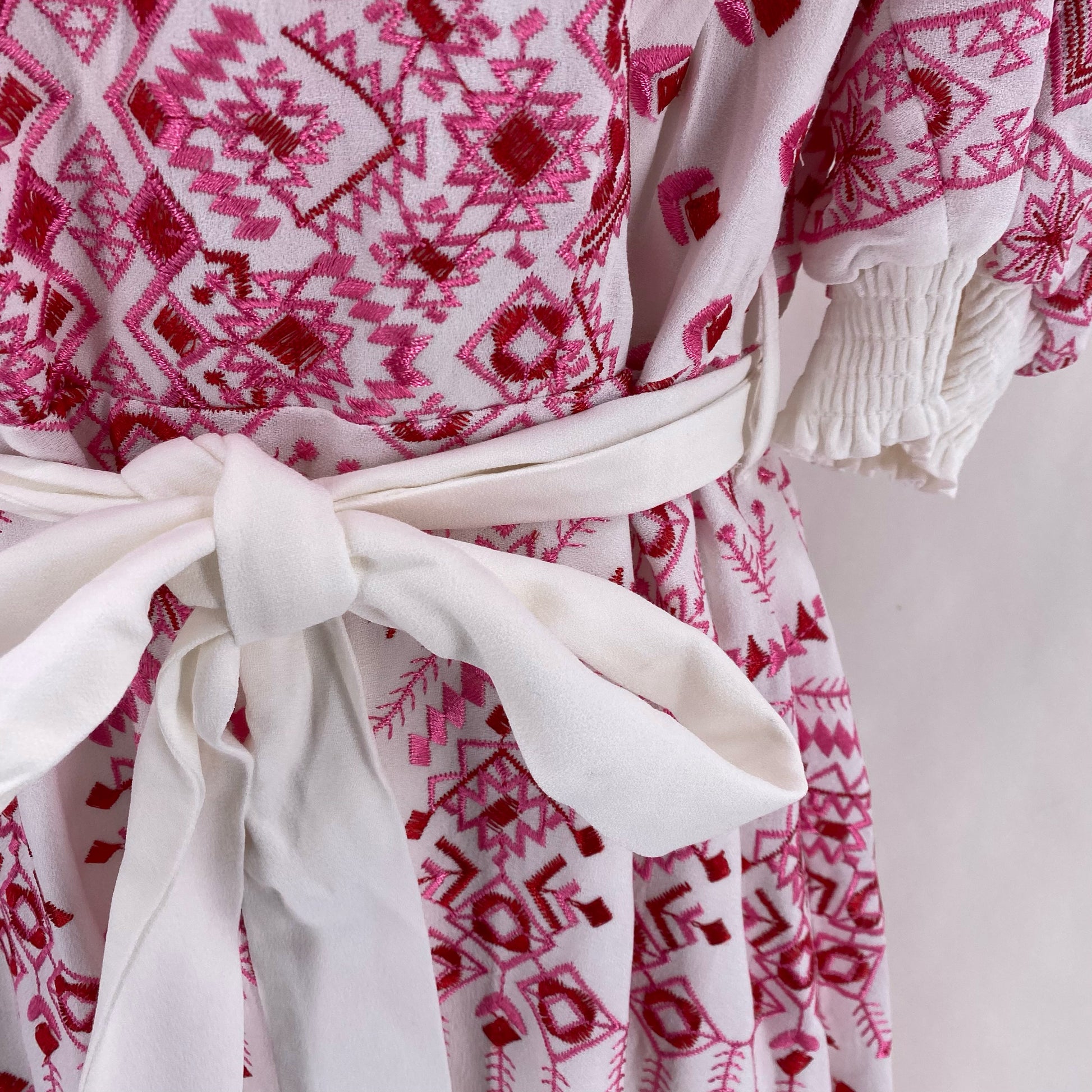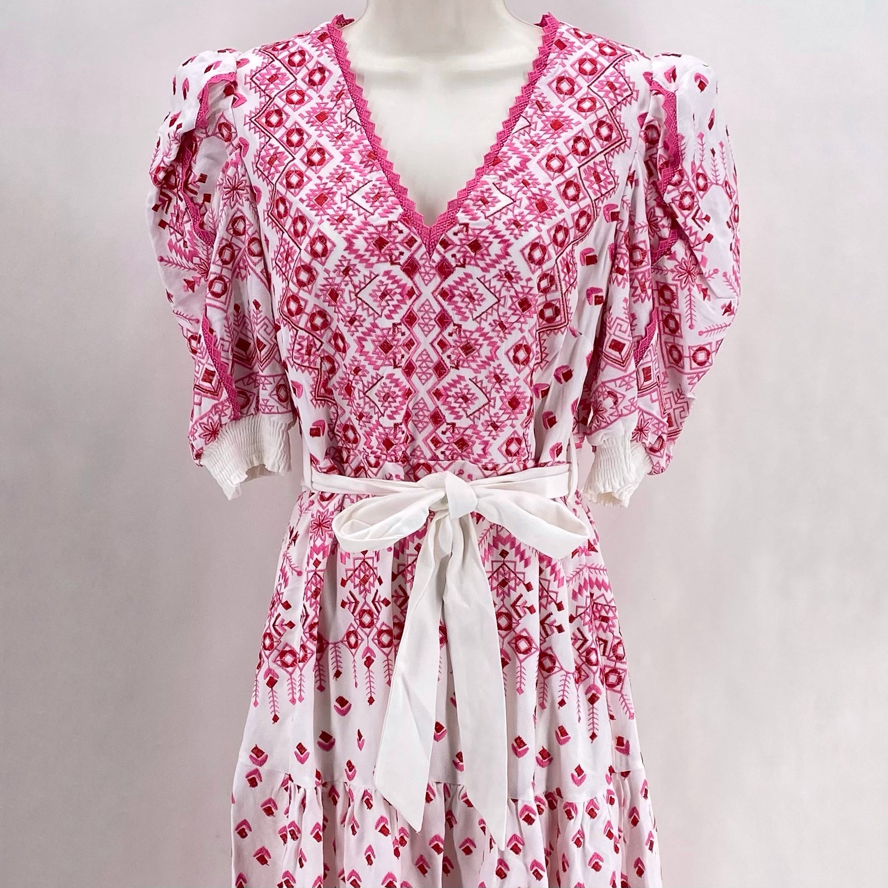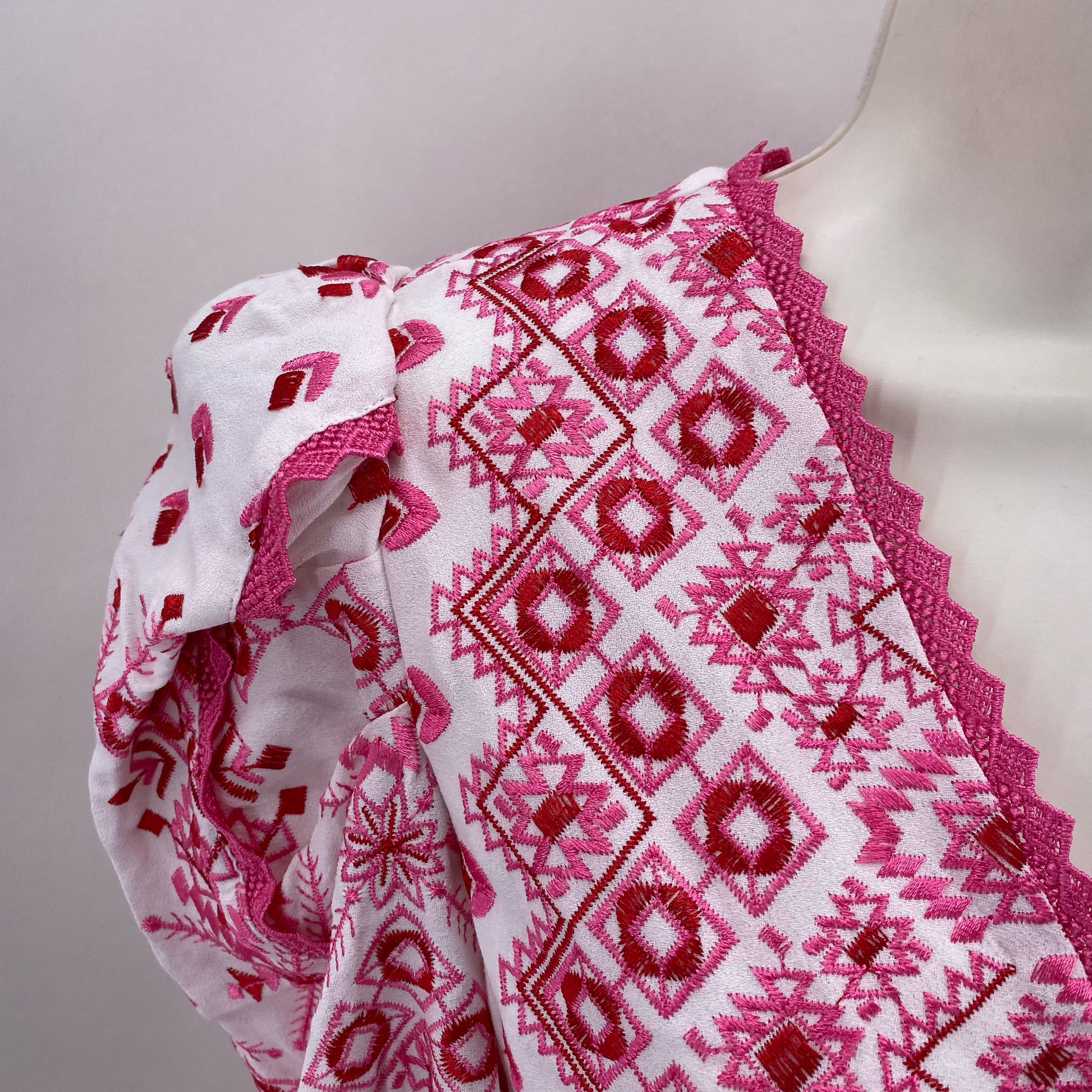 DES NWT HALF SLV V PNK/RED EMB